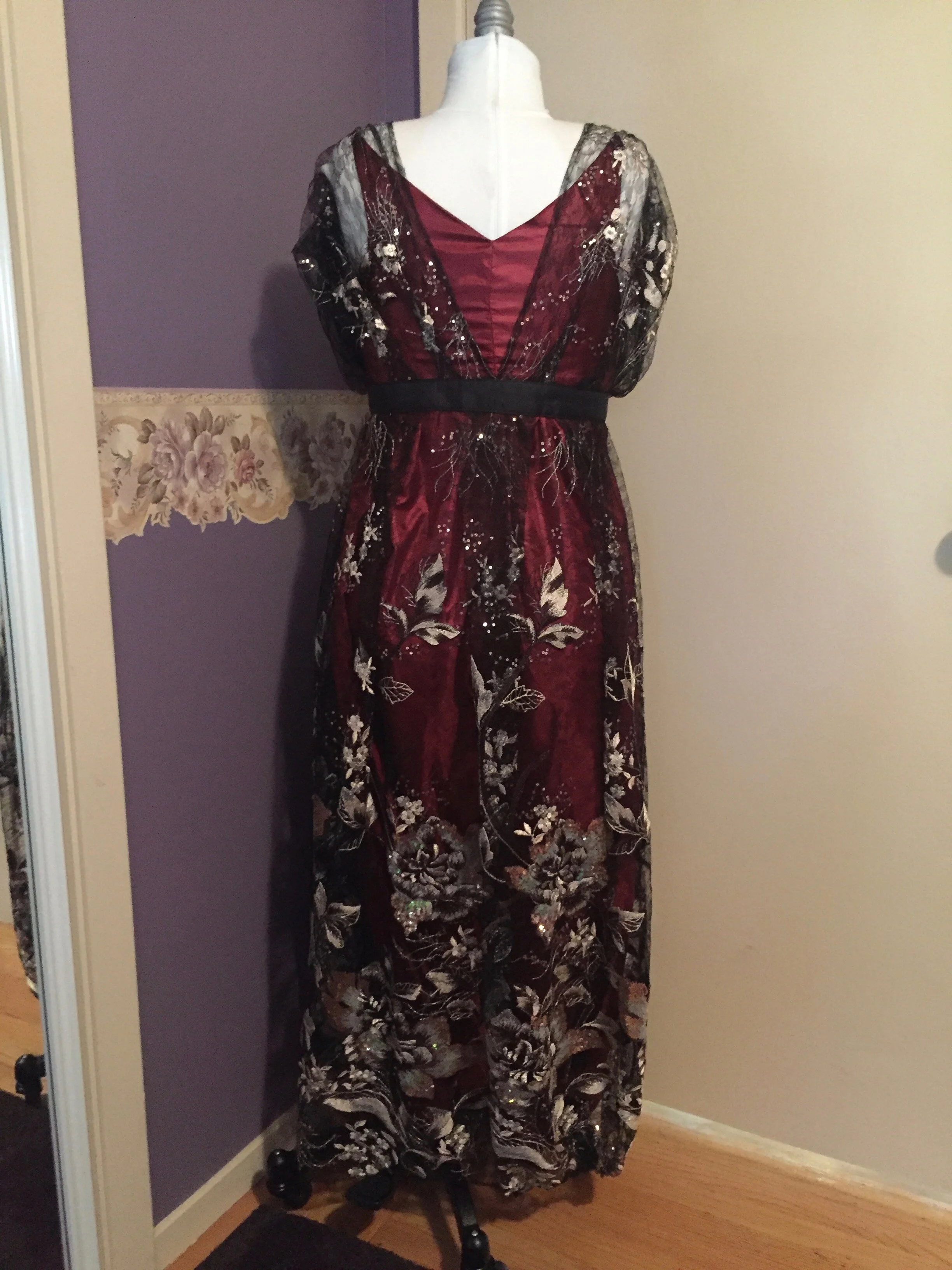 This dress is very loosely inspired by evening gowns from the early 1910s. My main references were this 1911 dress and this one from 1908, and these dresses were the main inspiration for the shape of the bodice and over skirt. However, this dress is most definitely not historically accurate, and that was never the goal, since I was really going more for the general look.